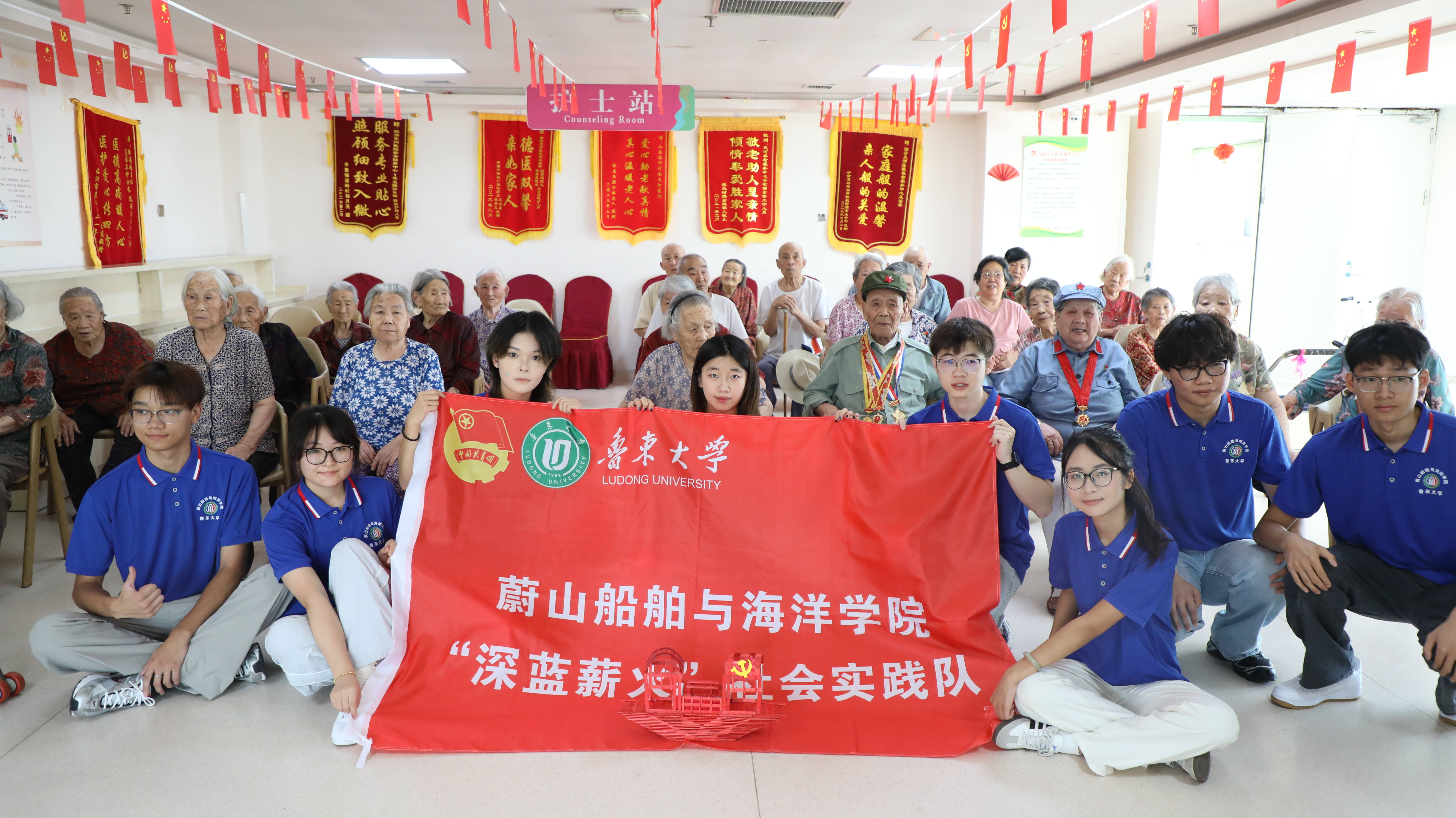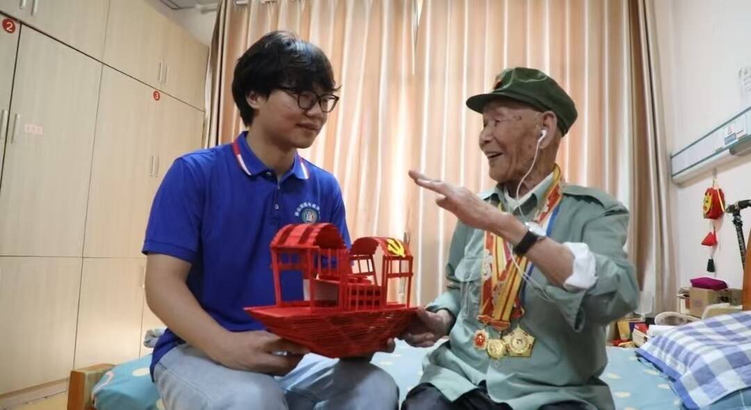 在沂南天河养老服务中心,实践队员带着精心准备的慰问品,为老人们送去关怀与温暖。年过九旬的抗战老战士朱有芹结合自身经历,讲述烽火年代的战斗故事:“当时条件再苦,大家心里都憋着一股劲,就想跟着共产党把日子过好!”老人的讲述让在场队员热泪盈眶。